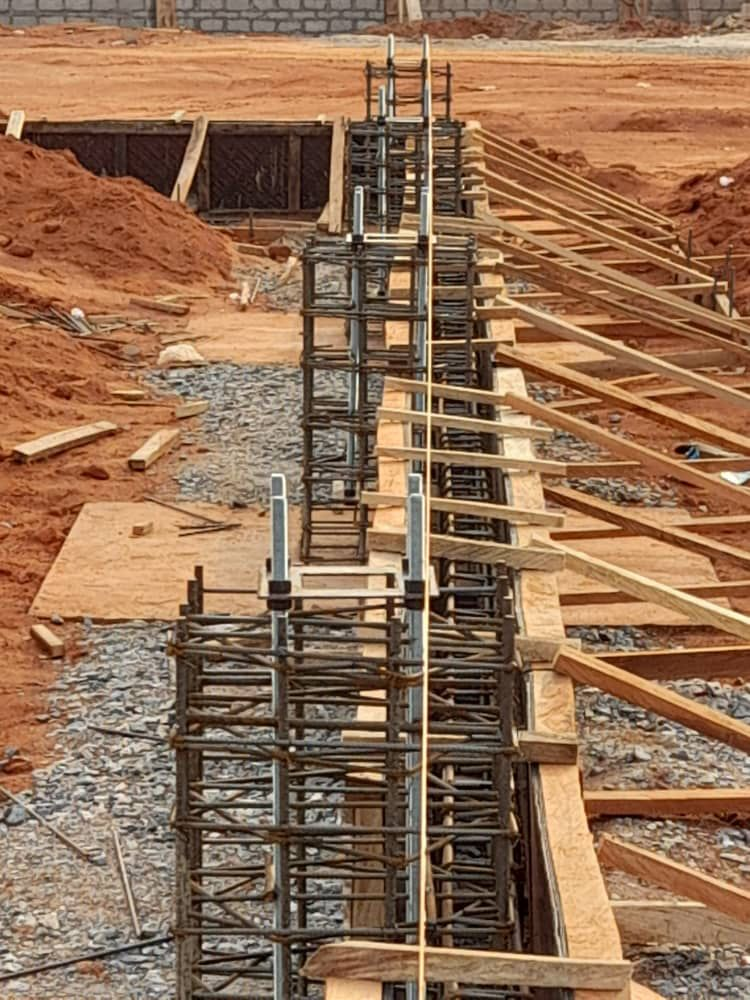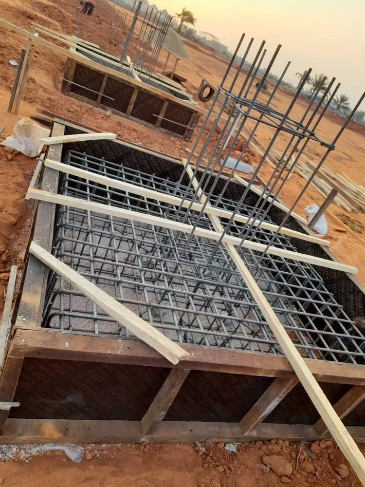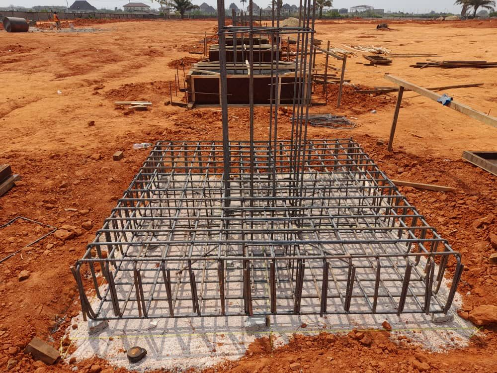 Execution of reinforced concrete pad foundations supporting industrial equipment and structural loads.