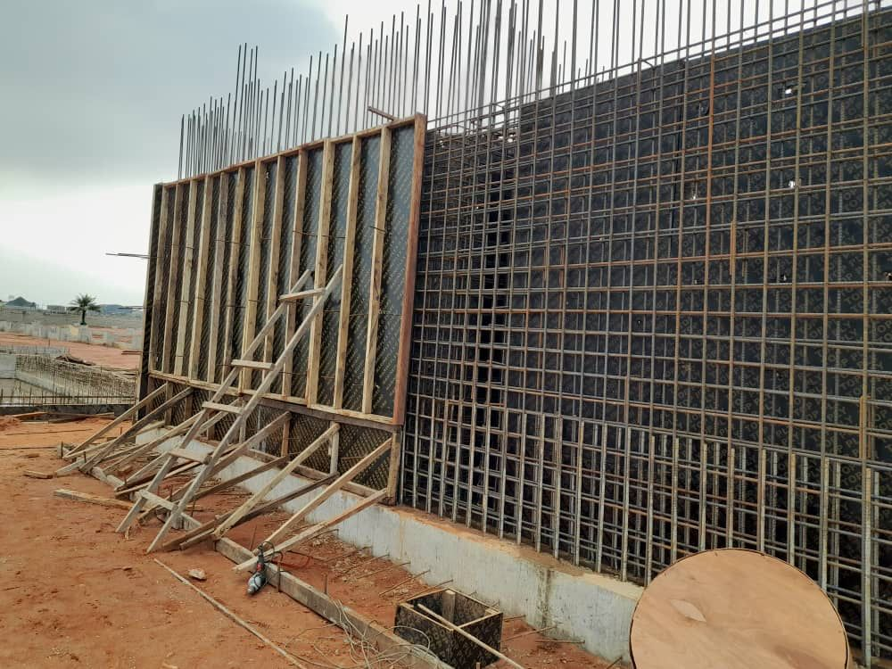 Construction of reinforced concrete wall systems with full formwork and structural casting.